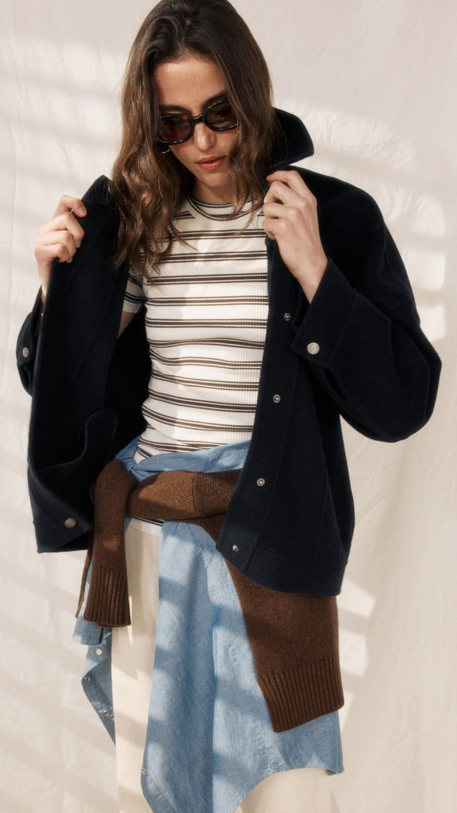 La chemise Paul a fait la renommée de Hartford chez les hommes : une coupe regular et des tissus d’exception. La veste homme Jonah, autre pièce signature, illustre le savoir-faire d’Hartford dans l’association des meilleures matières et des modèles intemporels.