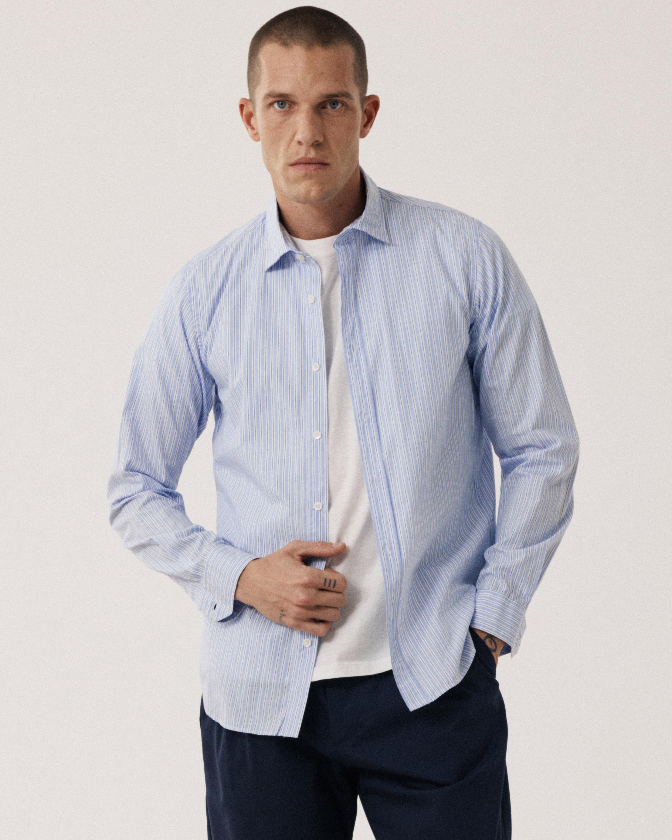 Les chemises regular homme incarnent l’équilibre entre confort et allure. Leur coupe droite, ni trop ajustée ni trop ample, accompagne naturellement les lignes du corps et s’adapte à toutes les morphologies.