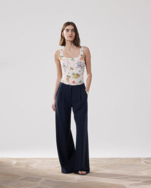 Einteiliger Damenbadeanzug. Quadratischer Ausschnitt. Ausgeschnittener Rücken. Formender Taillenbund.