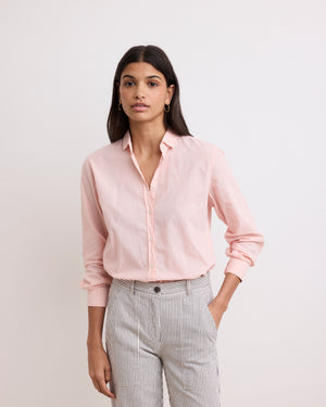 Women's iconic shirt in Cotton Voile. Slightly fitted with a small collar and exposed button placket. Mother-of-pearl buttons.