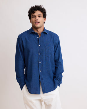Paul Men's Indigo Blue Checked Linen & Cotton Shirt