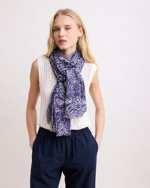 Women's scarf in exclusive "Palm trees" printed Cotton Voile. Fringed finish. Dimensions approx. 65 x 180cm.