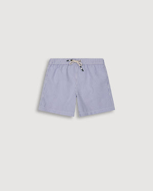 Achille Boy's Deep Blue Seersucker Swim Trunks