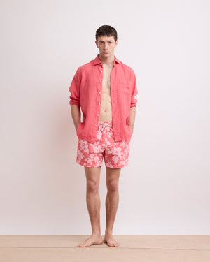 Hartford's iconic Swim Trunks for men, the SWIM is a mid-length short with two side pockets and a back pocket. Its elastic waistband adjusts with drawstrings.