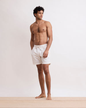 Hartford's iconic Swim Trunks for men, the SWIM is a mid-length short with two side pockets and a back pocket. Its elastic waistband adjusts with drawstrings.