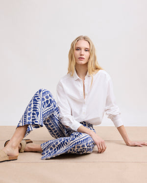 Palerme Women's Blue Shell Printed Linen & Cotton Pants