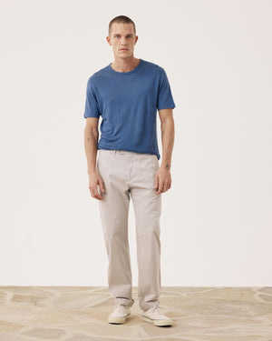 Men's regular fit pants. Two side pockets and two welt pockets at the back. Zipper closure with button. Flat belt with belt loops.