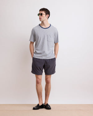 Men's Corduroy shorts with elasticated waistband. Built like a Swim Trunks, these shorts have side pockets and a back pocket. The fit is longer than our Swim Trunks, however, and there's no inner mesh lining.