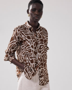 Corazon Women's Beige & Brown Printed Cotton Shirt