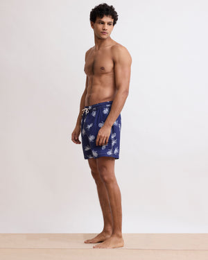 Men's Deep Blue Pineapple Printed Lightweight Seersucker Swim Trunks