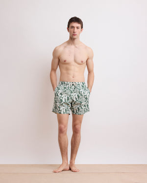 Hartford's iconic Swim Trunks for men, the SWIM is a mid-length short with two side pockets and a back pocket. Its elastic waistband adjusts with drawstrings.