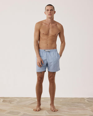 The SWIM is Hartford's iconic men's swim trunks, a mid-length swim short with two side pockets and a back pocket. Its elastic waistband can be adjusted with drawstrings.