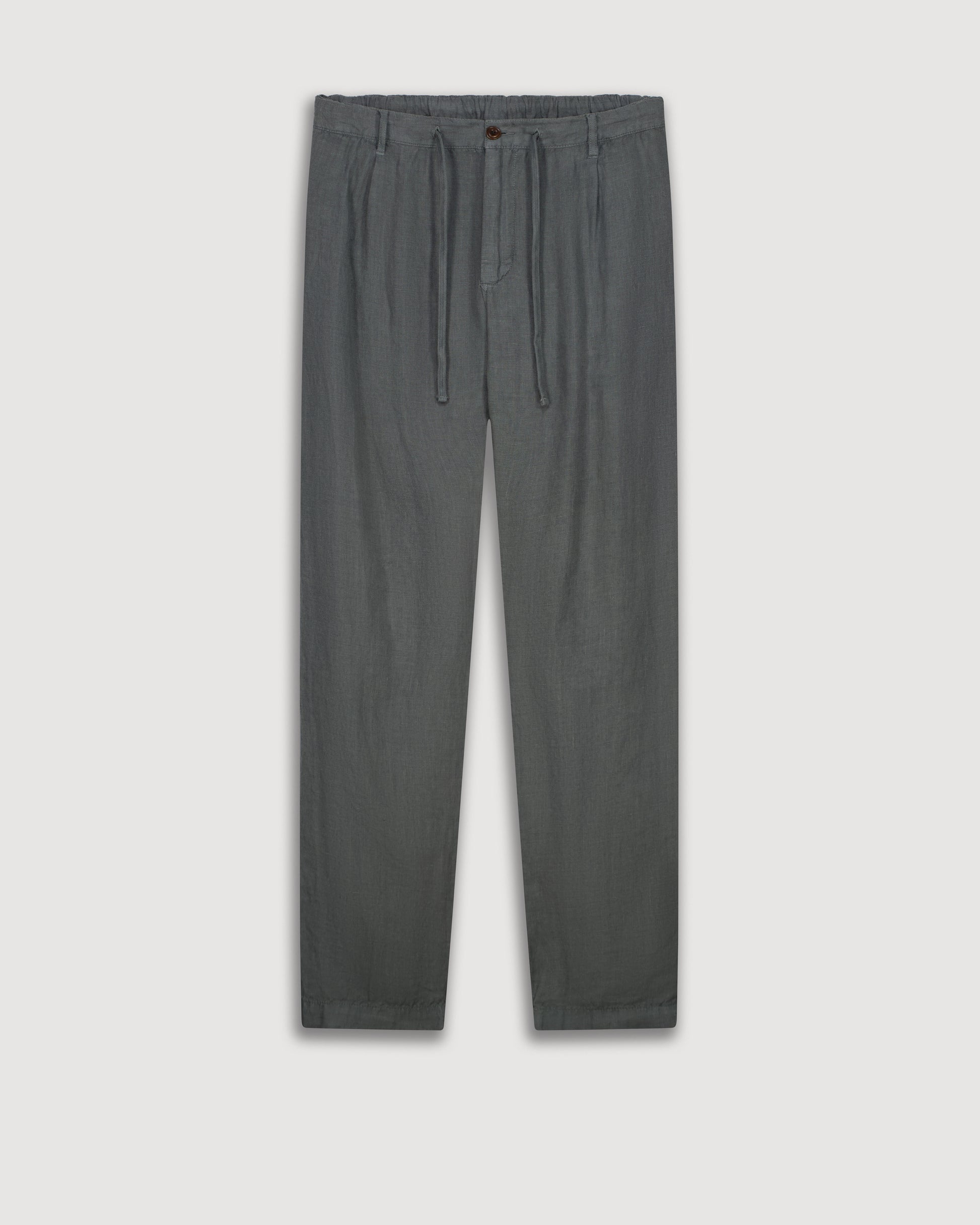Men's casual linen pants with elasticated waistband and drawstring waist, piped back pockets and side Italian pockets. Straight fit.