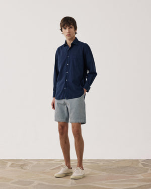 Lightweight men's shorts with elastic waistband and drawstring. Side slash pockets and piped back pockets.