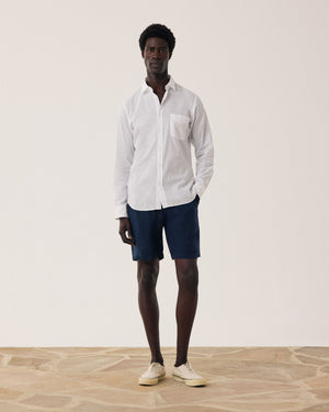 Men's lightweight shorts with elastic waistband and drawstring. Italian side pockets and back welt pockets.