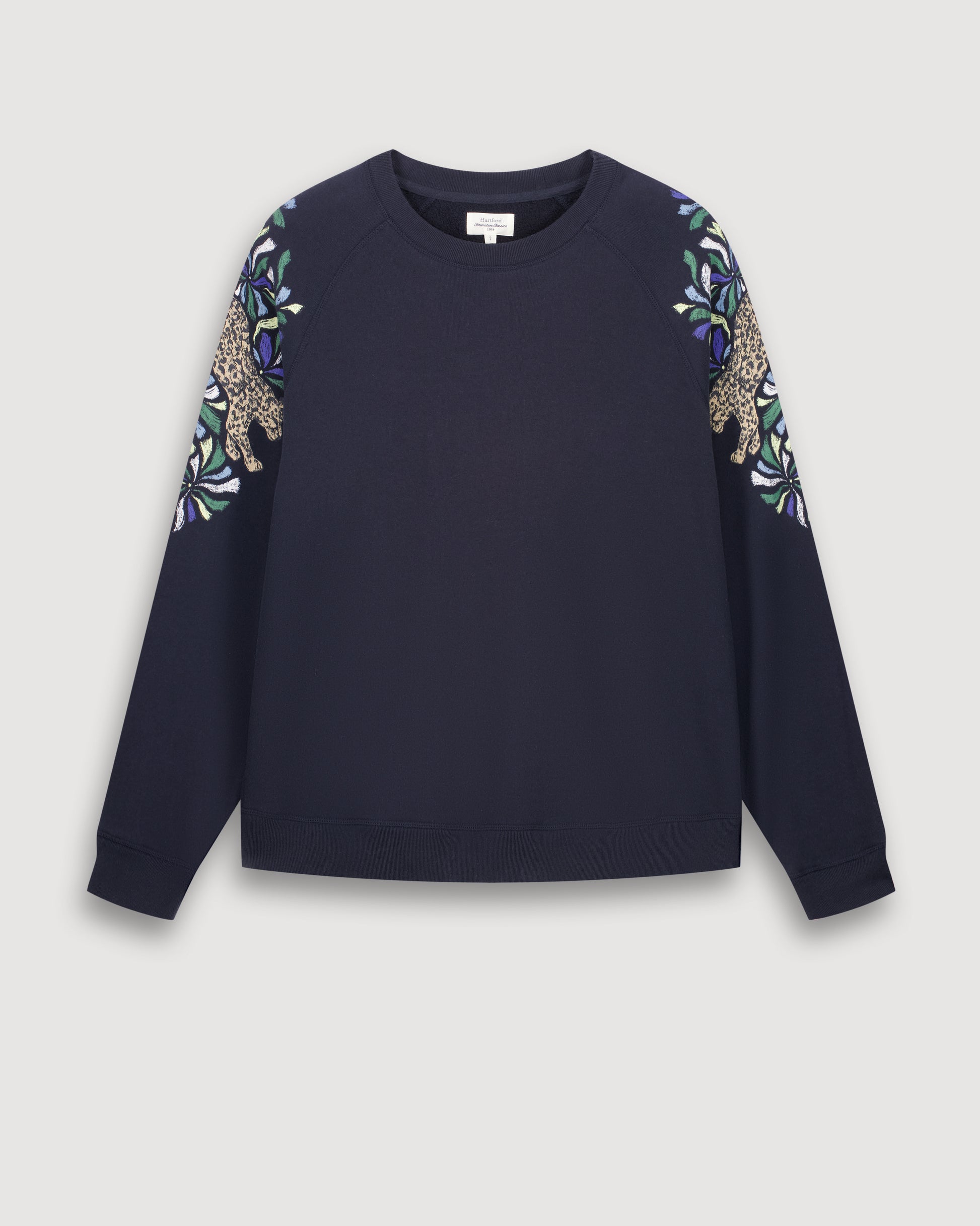 Women's long-sleeved round-neck sweatshirt with a fit loose fitting. Raglan armholes with exclusive "Leopard" print.
