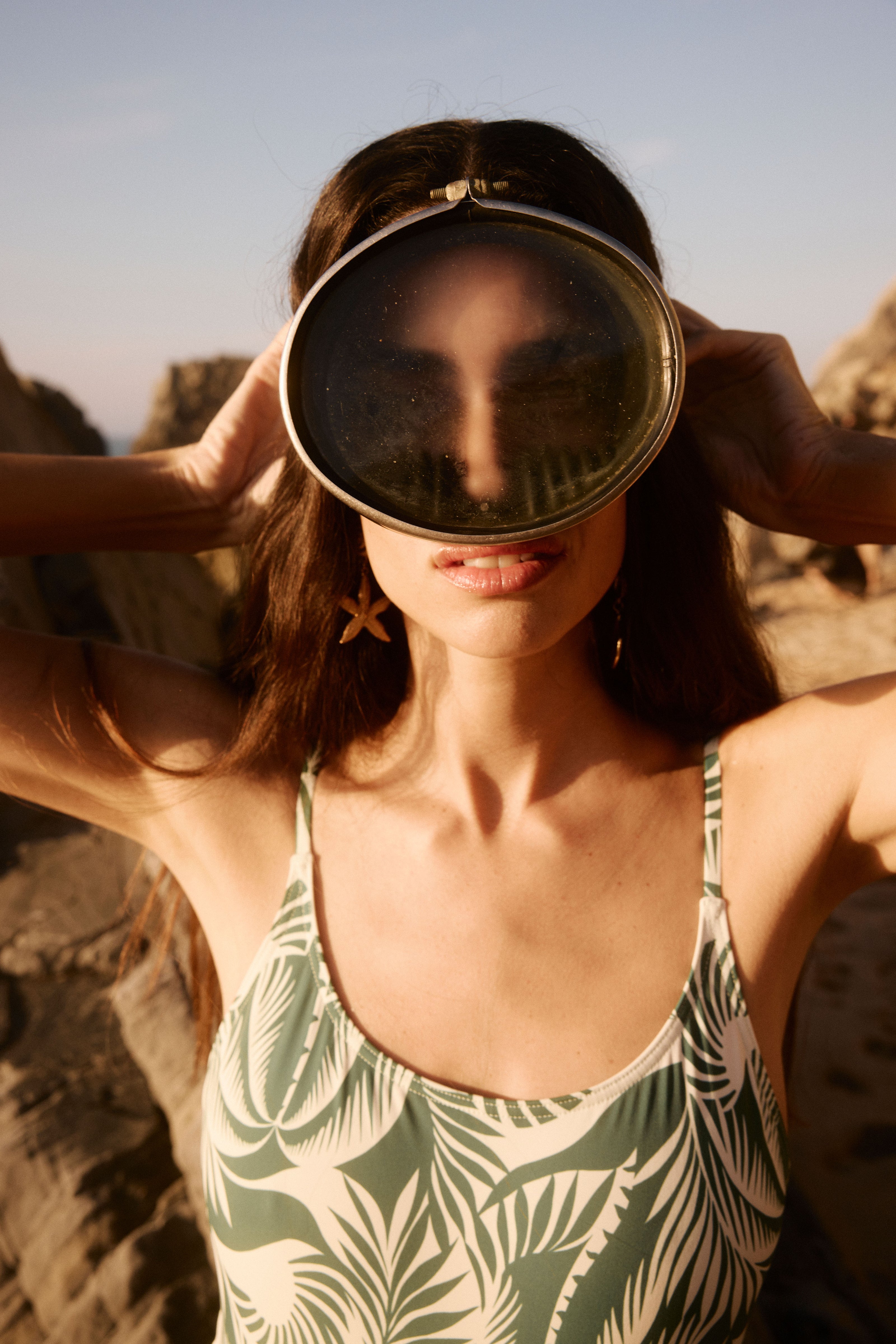 Located north of Lisbon, this wild and charming beach is a real gem. Surrounded by spectacular cliffs and lush forest, it offers breathtaking natural vistas, perfect for surfing enthusiasts and unforgettable sunsets. An exceptional setting for our swimwear.
