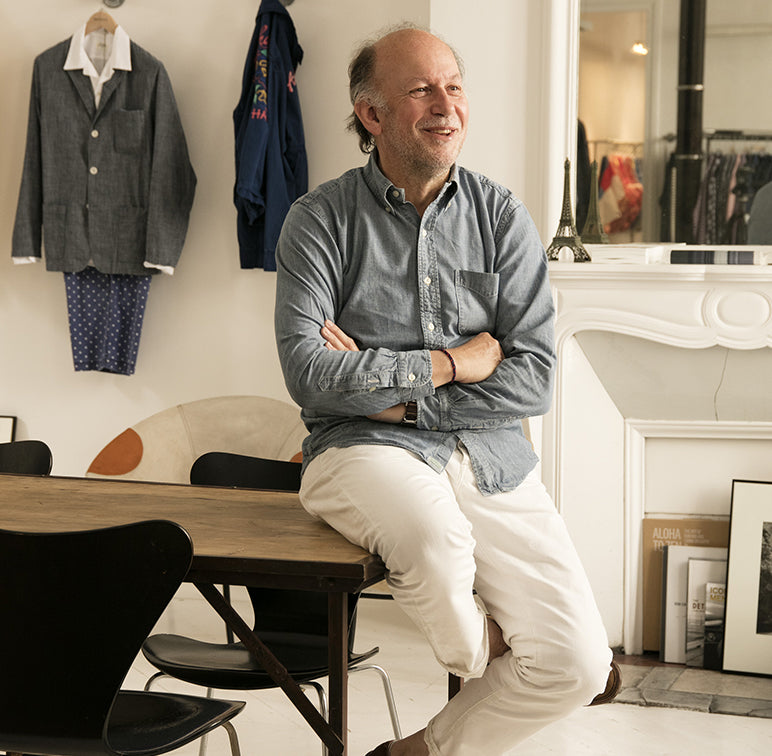 A decisive meeting launched the aventure: a New York manufacturer sold him old stocks of oxford and chambray fabric, perfect for making the first vintage-style Hartford shirts, unavailable on the market.