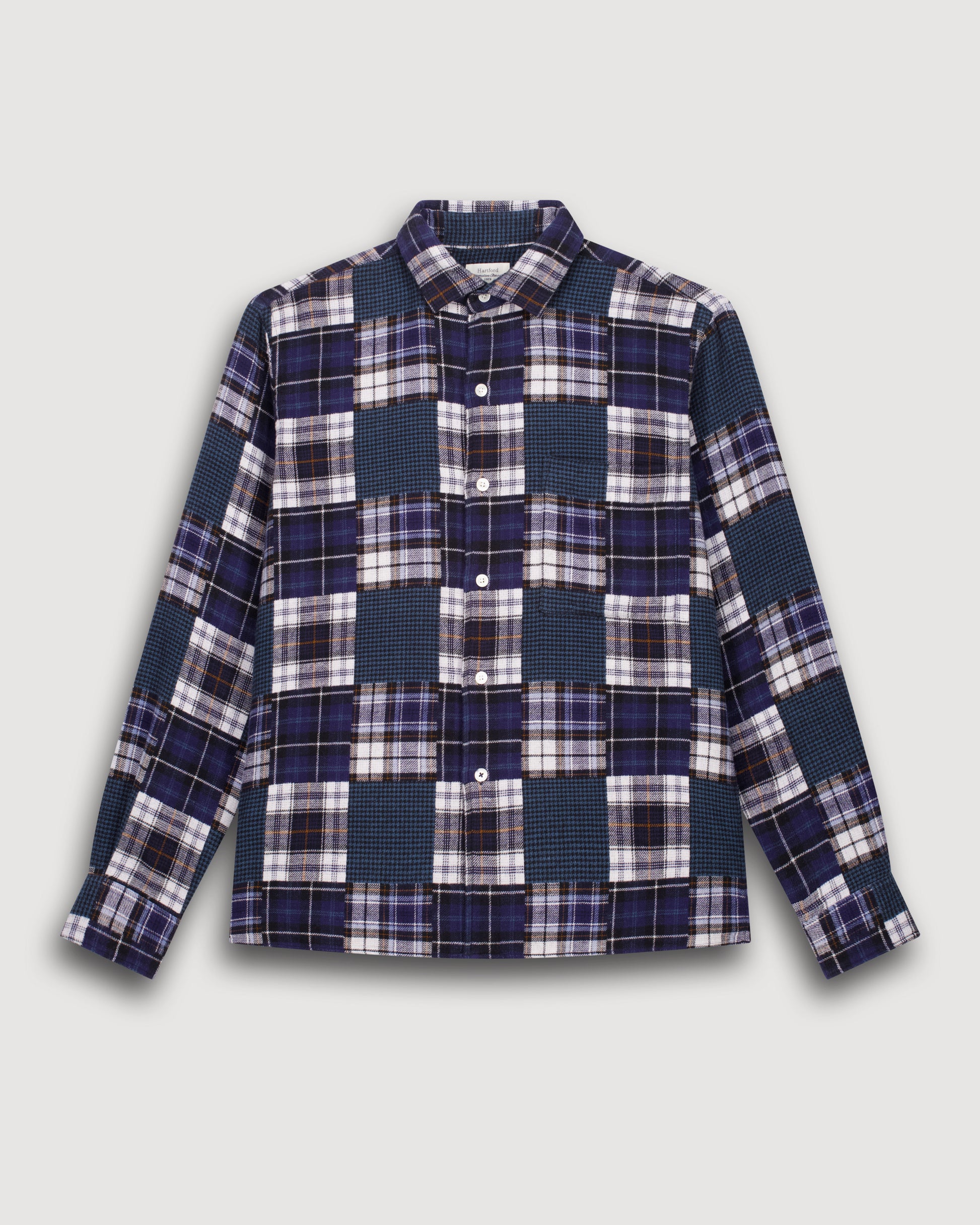 Patt Men's Blue Patchwork Flannel Shirt