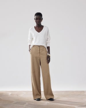 Positanon Women's Beige Lyocell & Linen Pants