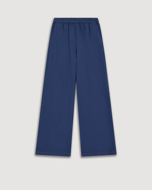 Wide-leg cotton twill pants for girls. Elasticated waistband with gathers and two side pockets.