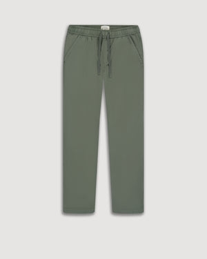 Straight-leg boy's pants with elastic waistband and drawcord, Italian side pockets and buttoned welt pockets on back.