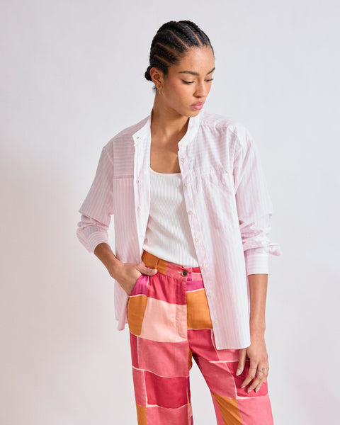 Hay varios diseños emblemáticos que vuelven cada temporada. En particular, la Camisa Corazón y la Camisa Coraz, los primeros modelos de camisas de mujer. A menudo eran camisas clásicas, más bien entalladas. Son bastante parecidas, pero el cuello de la Camisa Corazón es más pequeño y femenino, mientras que el cuello de la Camisa Coraz es más ancho, más parecido al de un hombre. Pero tienen exactamente el mismo volumen, con un corte entallado.