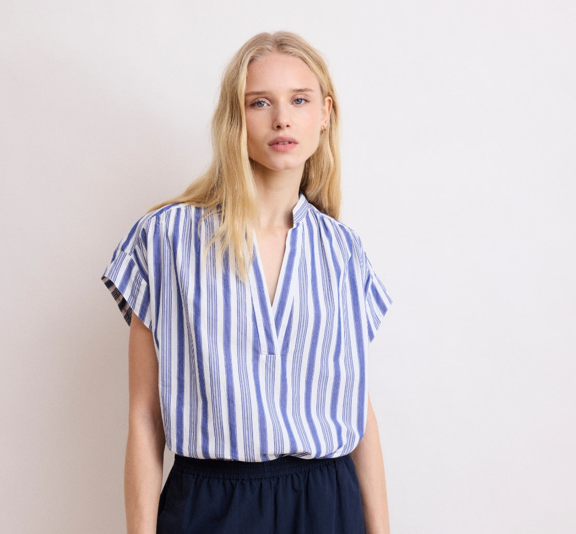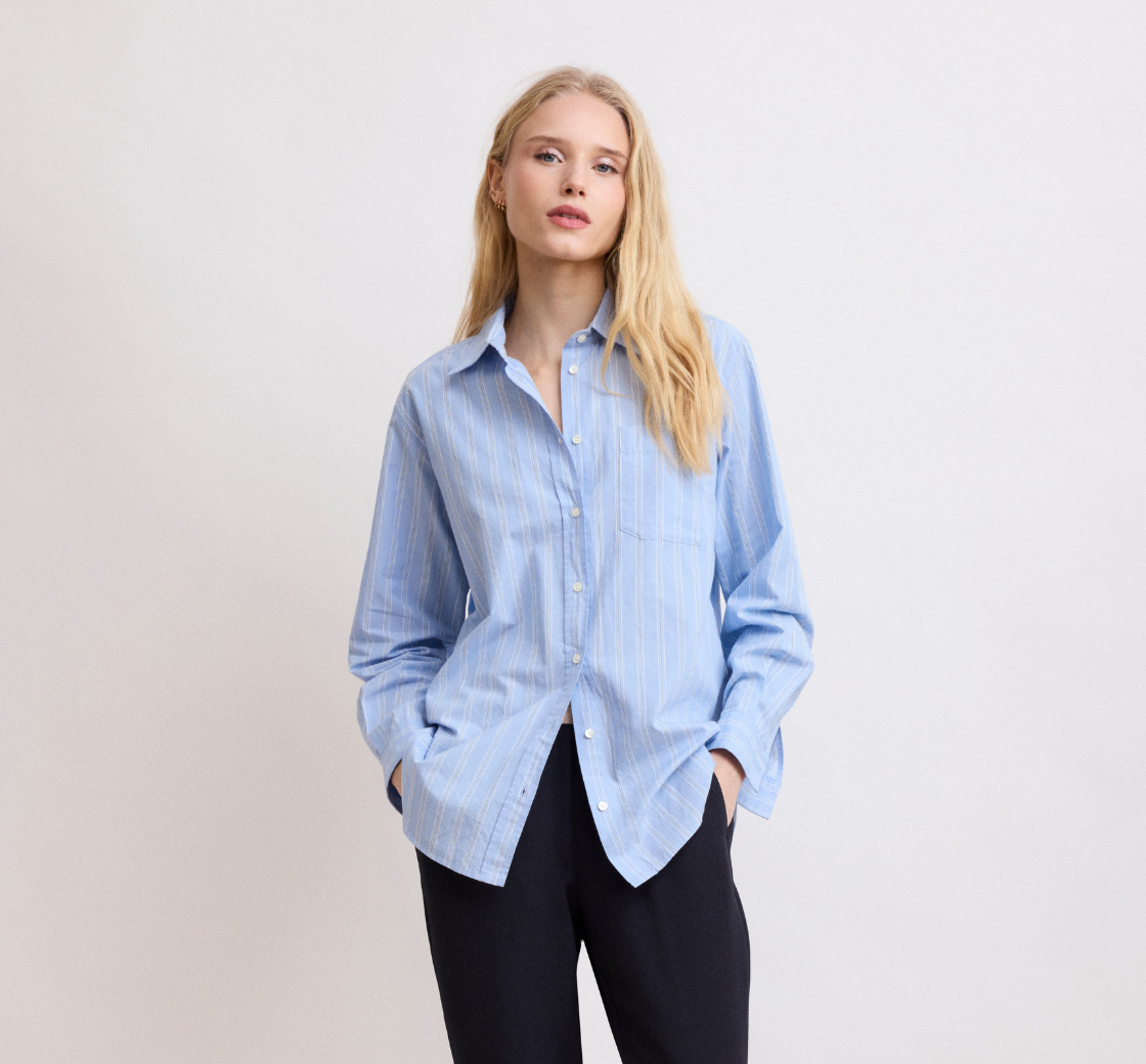 Podremos encontrar el Camisa Cineque es femenino, pero sobredimensionado, más amplio y suelto, con la sisa caída. En el mismo volumen, encontrará el Camisa Charlotpero con un cuello más fino que el Camisa Cinéma, lo que le confiere un aspecto aún más femenino.