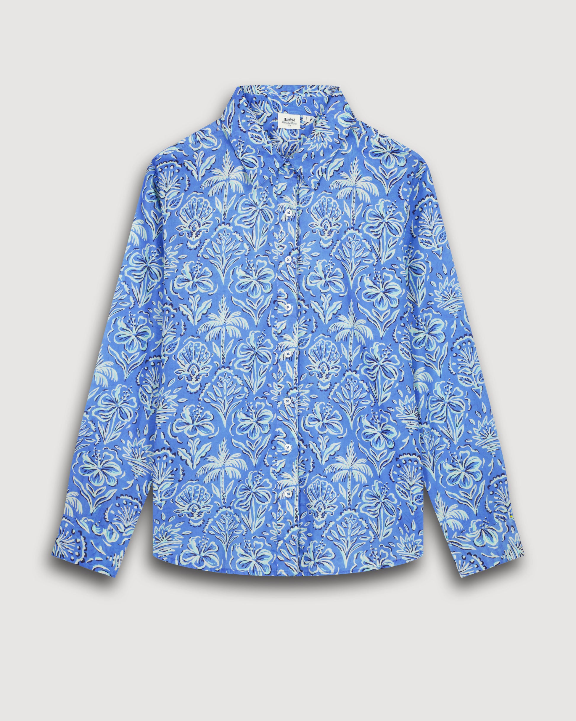 Camisa de mujer en Voile de algodón estampado. Corte entallado, cuello camisero y tapeta de botones a la vista con botones de nácar.