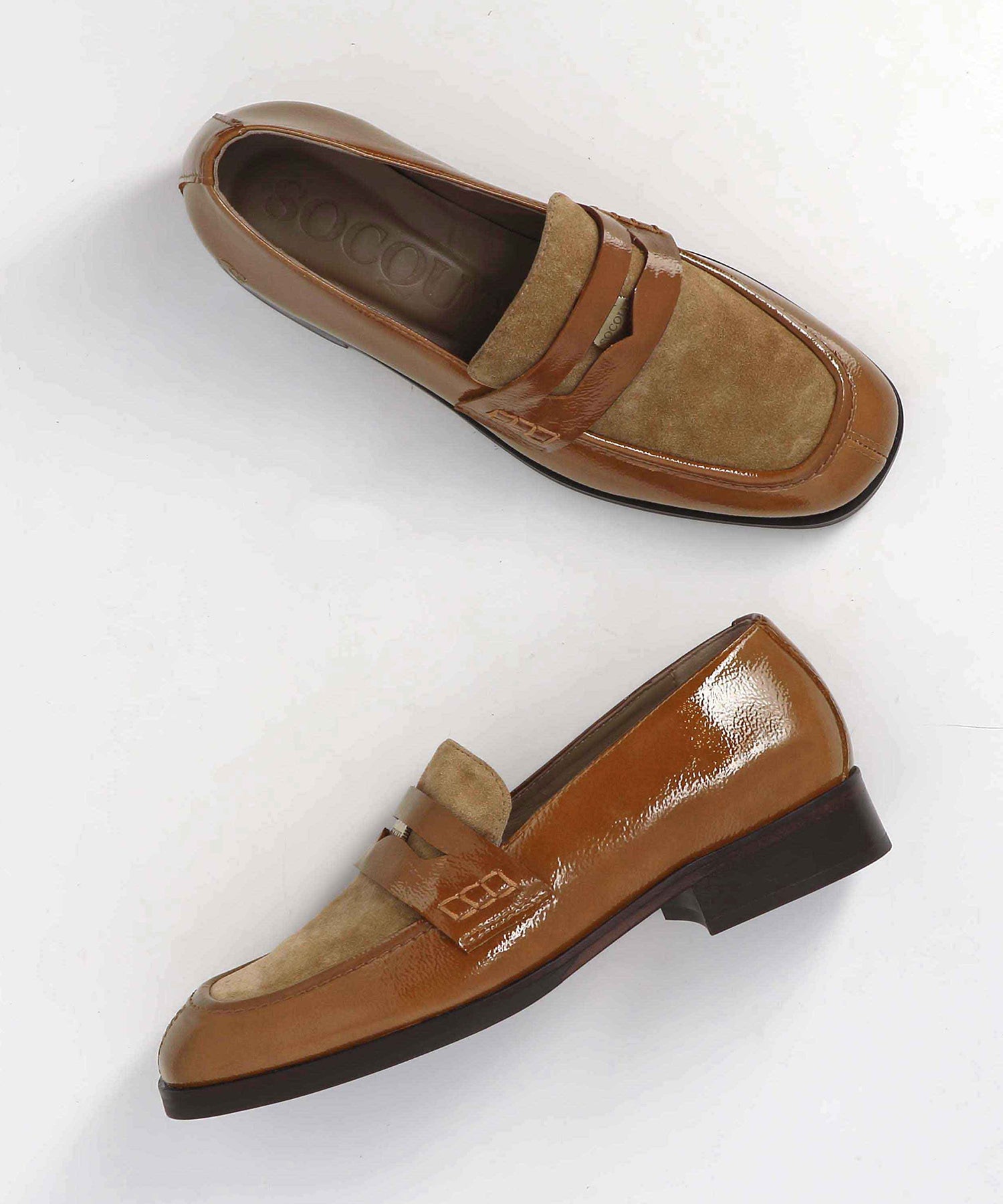 Un mocasín boyfriend de líneas limpias y aspecto ligeramente retro. La parte metálica es personalizable y elegida en un guiño a los tradicionales penny loafers que fueron la estrella de los campus americanos en los años 50. Tiene una suela de espuma y un pequeño tacón para una gran comodidad. Altura del tacón: 3 cm. Suela: marrón oscuro.