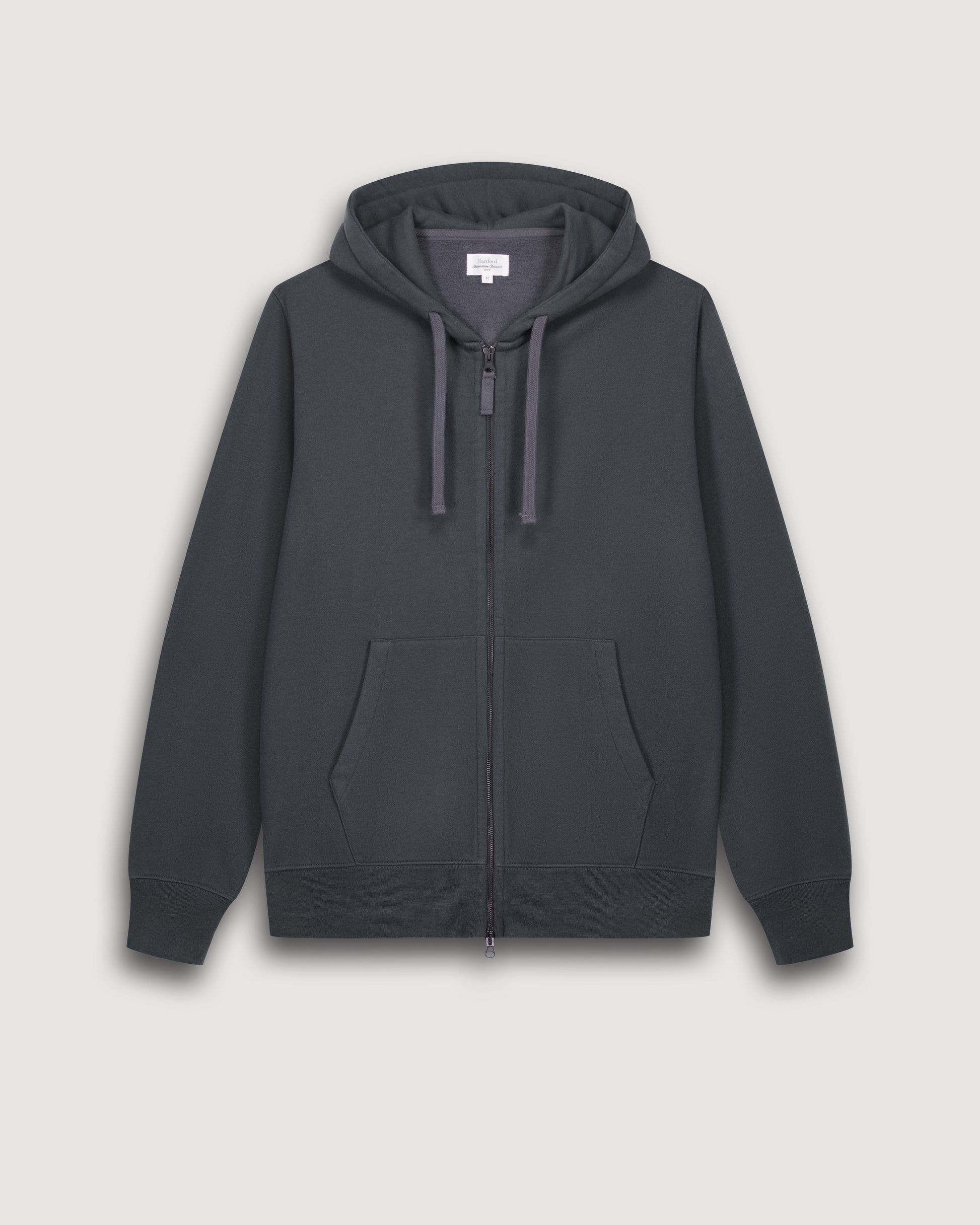Sudadera de algodón para hombre Lana Sudadera con capucha y cremallera de carbono