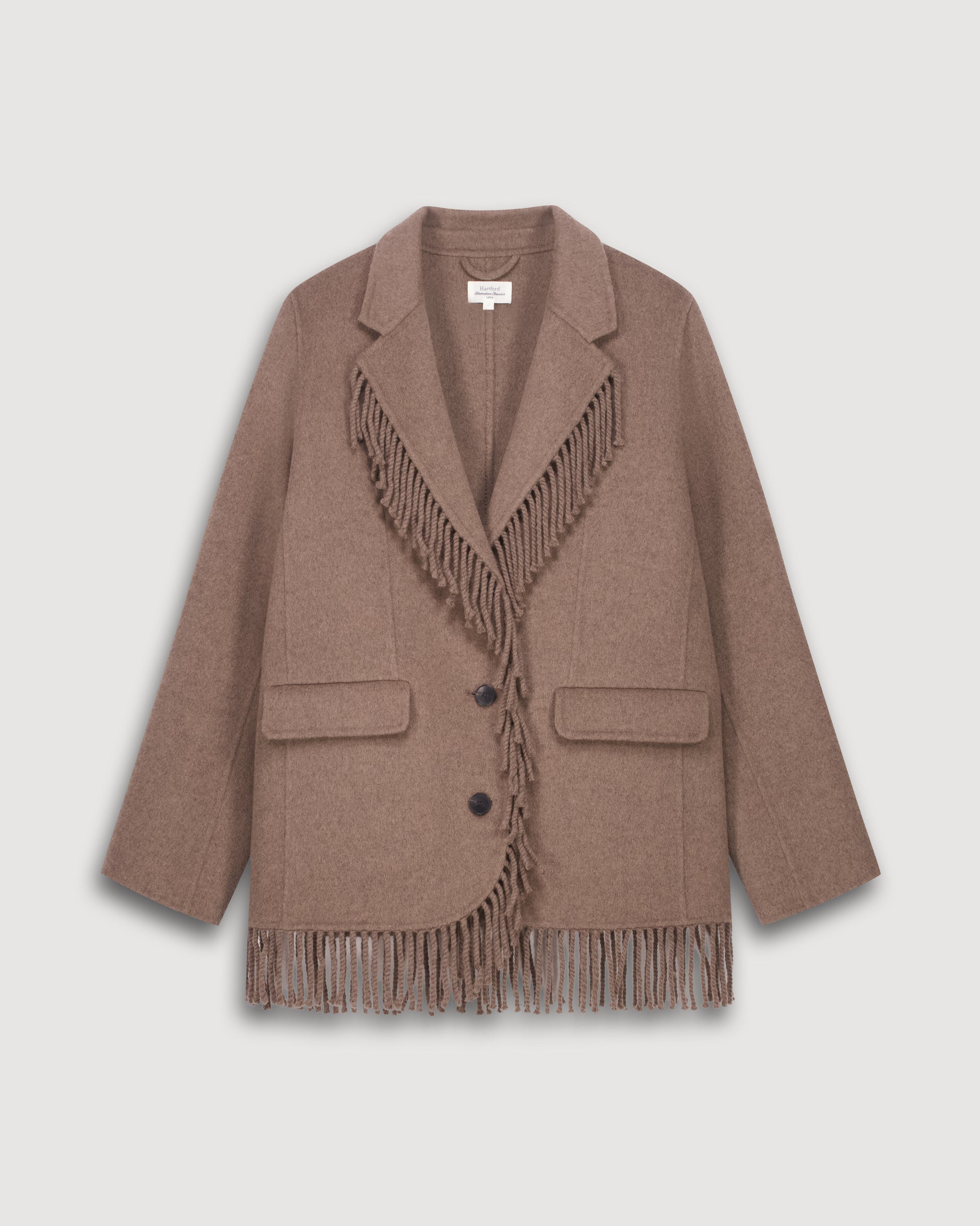 Chaqueta inspiración blazer en Lana con flecos. Cierre con tres botones. Dos bolsillos con solapa.