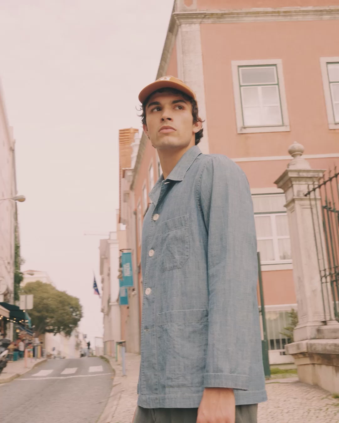 Chaqueta PERRY para hombre inspirada en la ropa de trabajo con bolsillo de parche en el pecho y dos bolsillos de parche en la cintura.