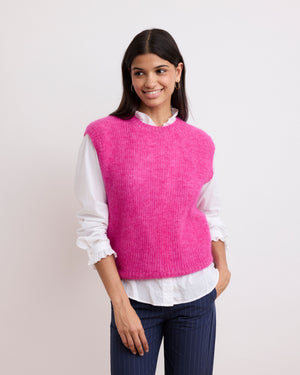Jersey de mujer sin mangas y cuello redondo en Alpaca y Merino. Punto de canalée.