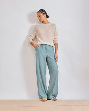 Pantalones de Viscosa Arrugada Verde Positano para Mujer