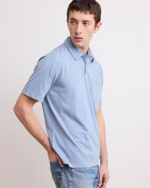 Polo de hombre en punto flameado con mangas cortas y bolsillo en el pecho.