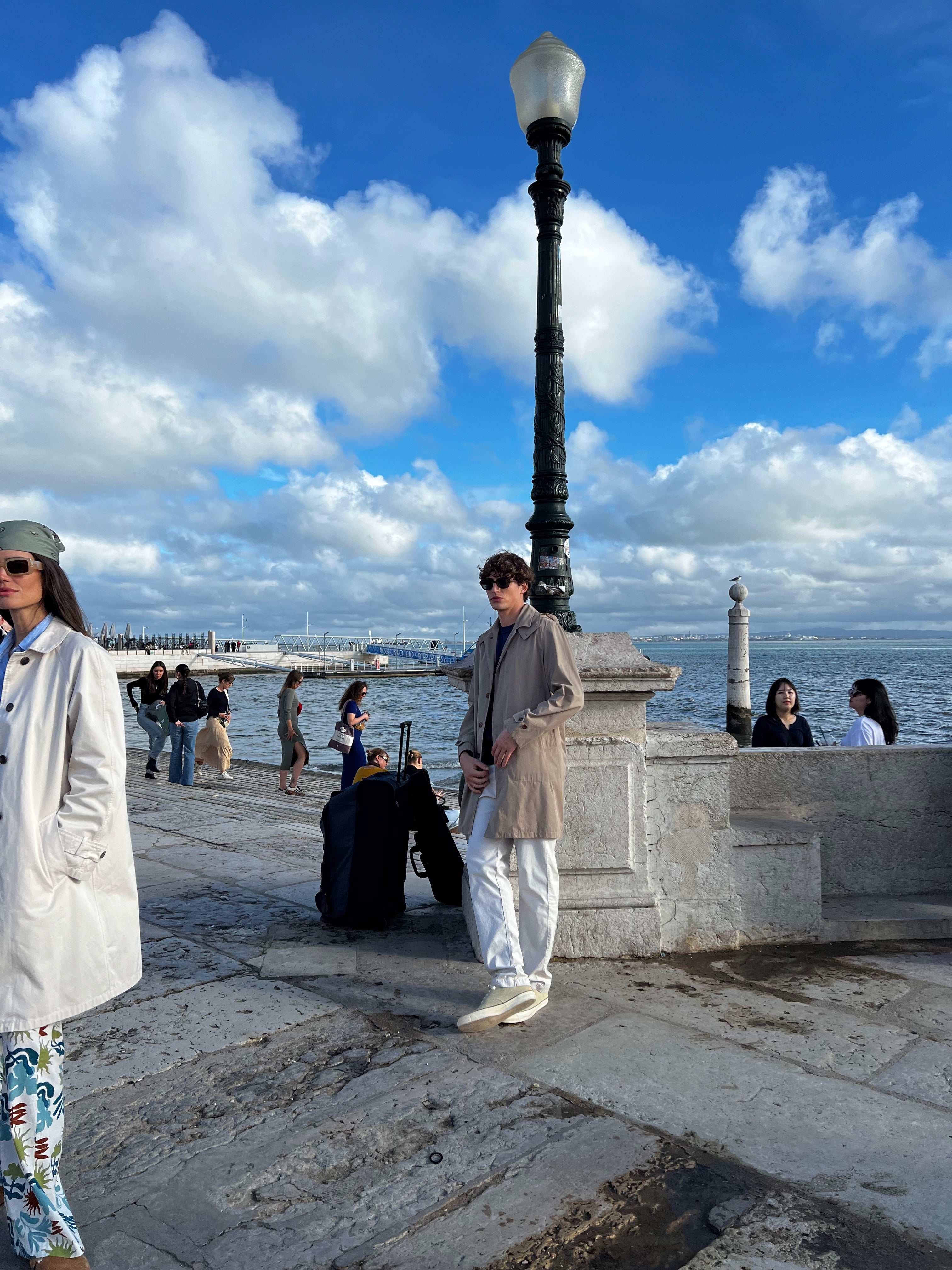 Situé au bord du Tage, le Cais das Colunas est l’un des lieux emblématiques de Lisbonne. Ces deux colonnes de marbre, vestiges de l’ancienne porte royale, marquaient autrefois l’entrée solennelle des dignitaires arrivant par le fleuve. Aujourd’hui, ce quai offre un panorama saisissant sur le pont du 25 Avril et l’horizon scintillant du Tage. Lieu de flânerie prisé, il invite à une pause face aux eaux tranquilles, bercé par l’atmosphère unique de la capitale portugaise. Entre reflets sur l’eau et architecture majestueuse, ce spot iconique a parfaitement mis en valeur notre collection, mêlant élégance et intemporalité dans un cadre chargé d’histoire.