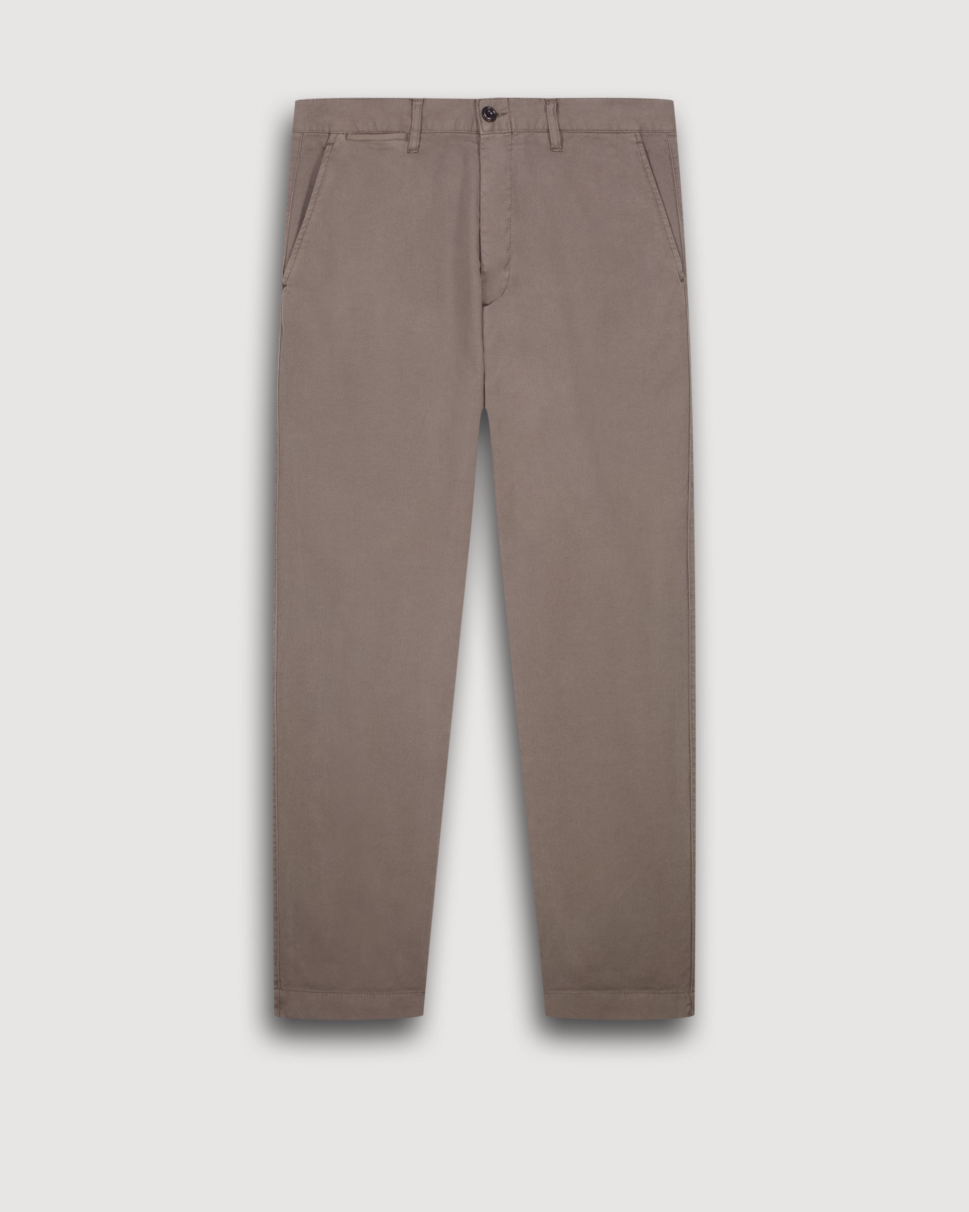Pantalon homme Tyron à la coupe regular, légèrement plus ample que le chino TEX. Deux poches sur les côtés et deux poches passepoilées boutonnées au dos. Fermeture glissière et passants pour ceinture.