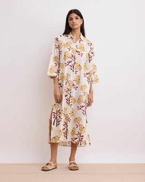 Robe Femme en Coton Imprimé Palmiers Doré & Marron Rune