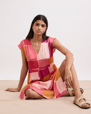 Robe Femme en satin de viscose Imprimé géométrique Rose Rooni