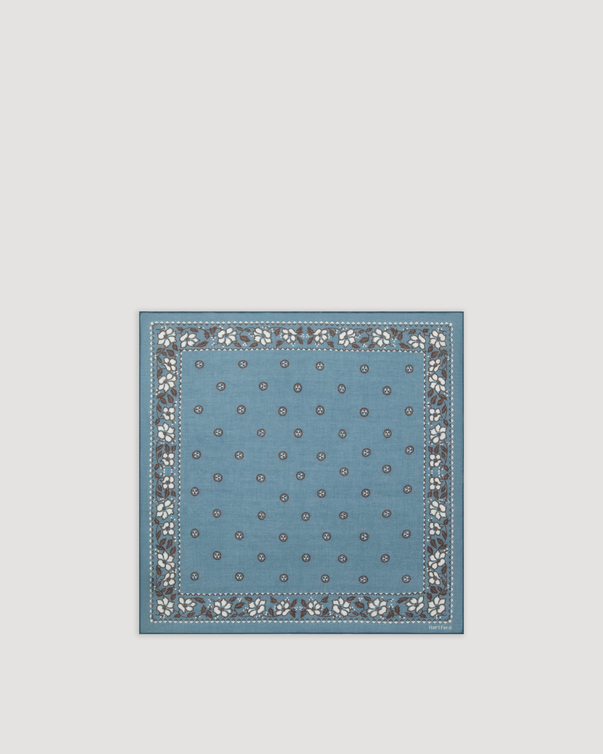 Petit Bandana femme en voile de coton imprimé exclusif "Hibiscus". Dimensions environ 75 x 75cm.