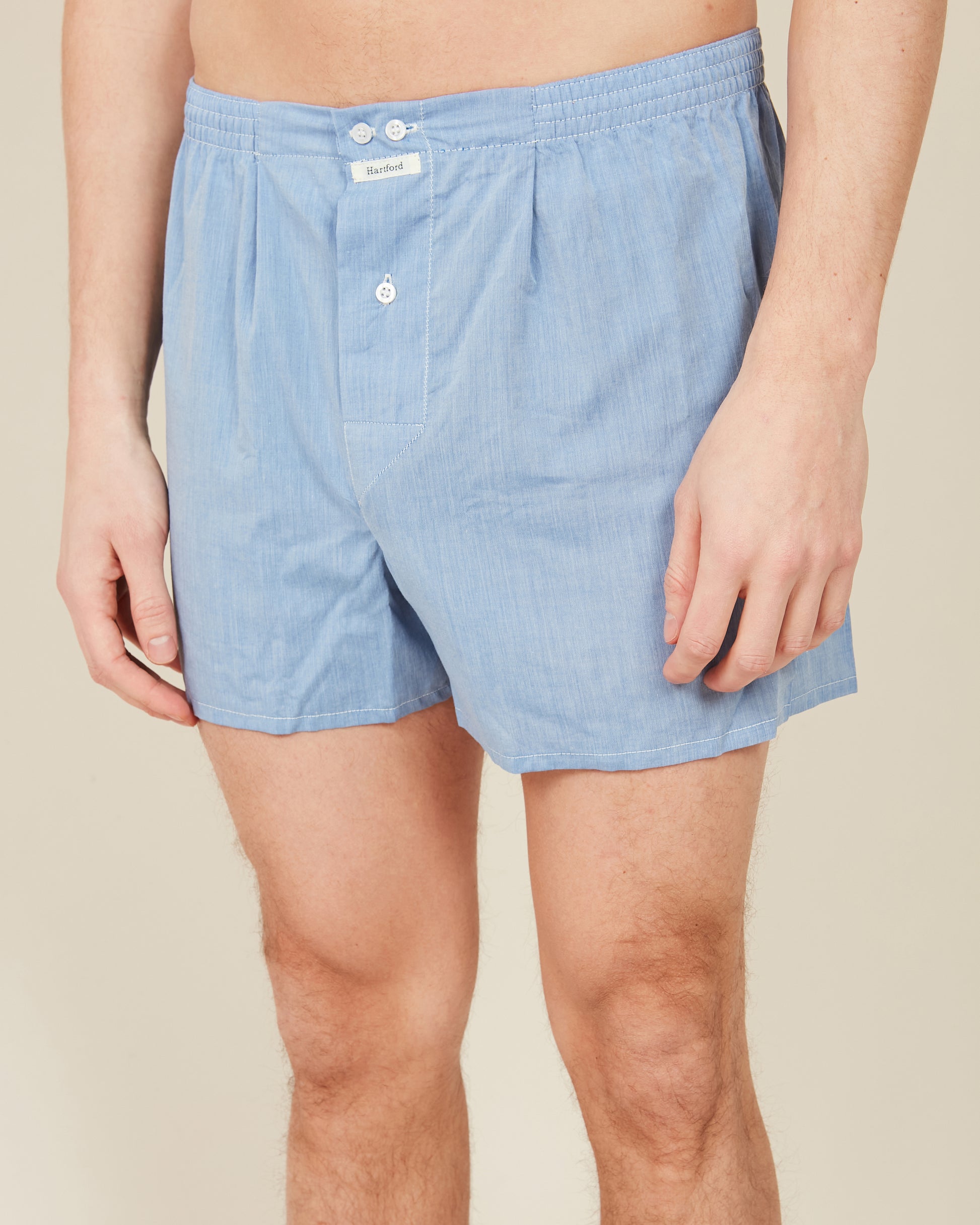 Caleçon homme en coton uni dans les coloris blanc, bleu ou rose confectionné dans nos ateliers au Maroc à partir des chutes de tissus provenant de nos chemises. Pour garantir les normes d’hygiène, les sous-vêtements ne peuvent être ni repris, ni échangés, ni remboursés.