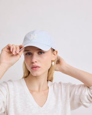 Casquette Femme en Seersucker Bleu Ciel Cap H