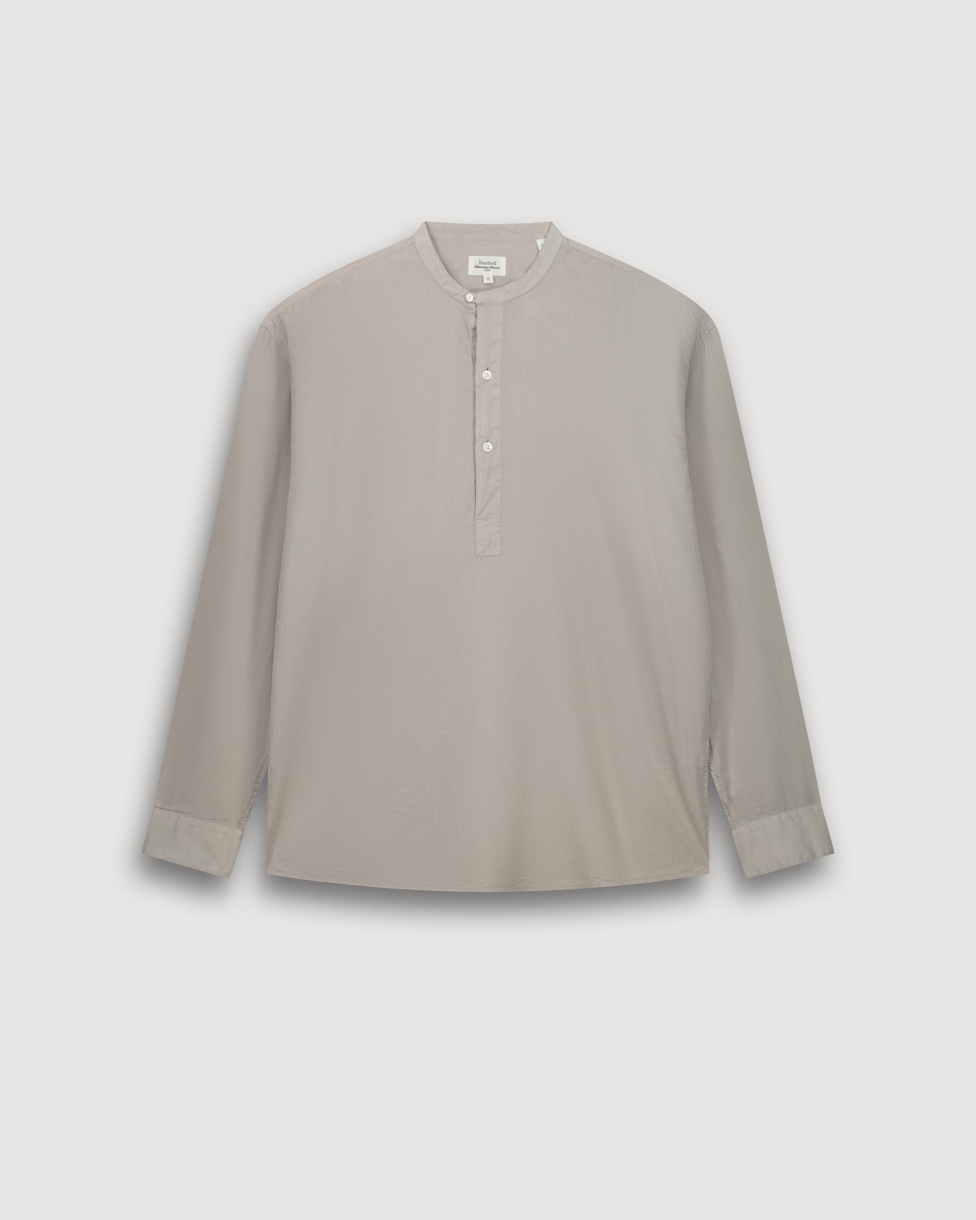 Chemise homme à demi-patte de boutonnage "popover" et col officier.