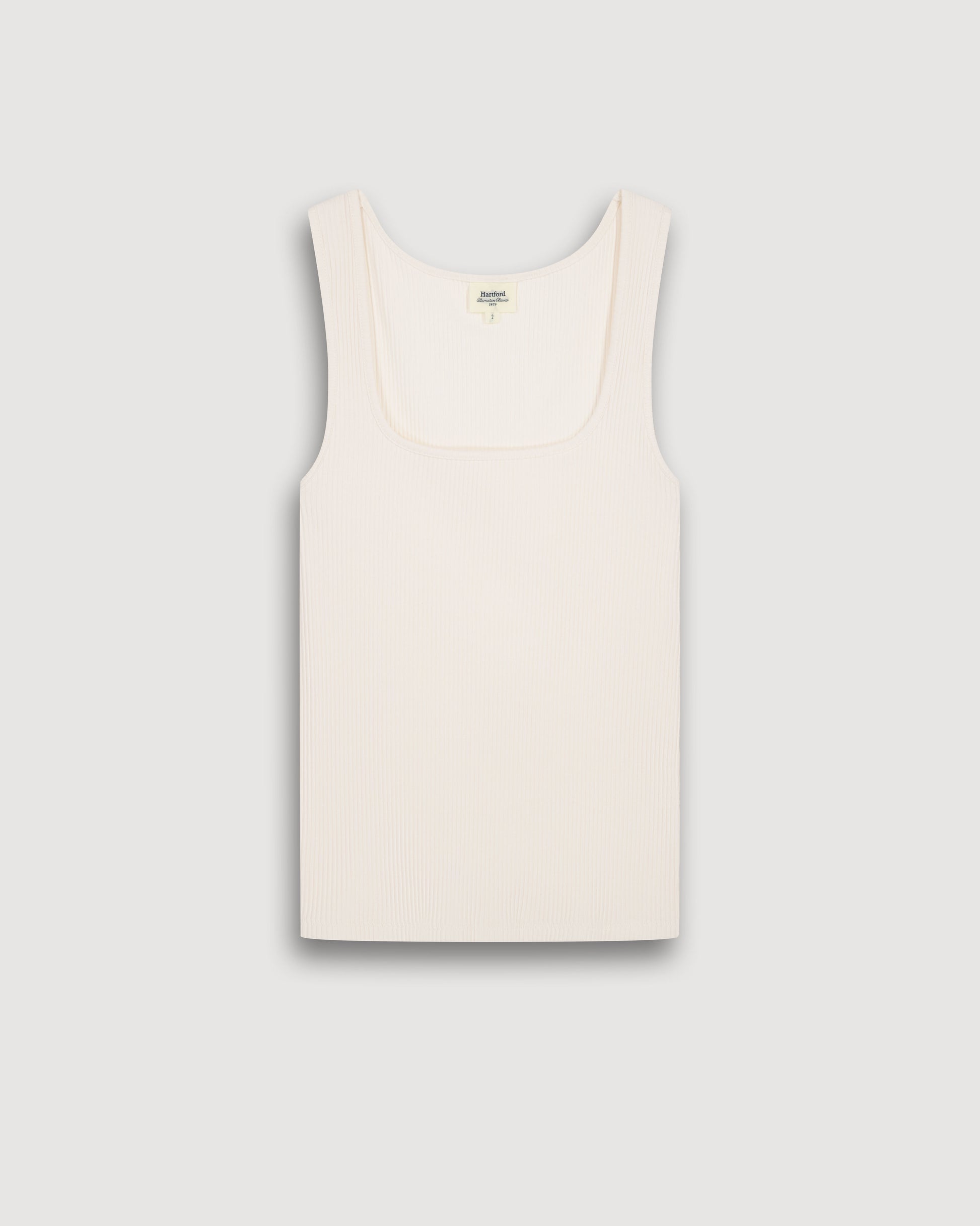 Débardeur femme à col carré en coton côtelé uni.