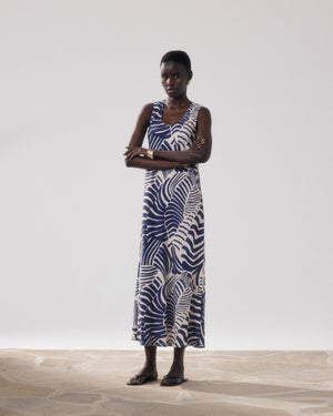 Robe Femme en Lin & Viscose Imprimé Beige & Bleu Rosabeth