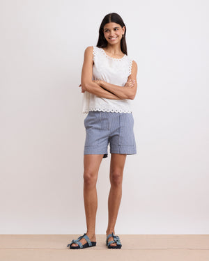 Short Femme en Twill de Coton Rayé Bleu & Blanc Sat