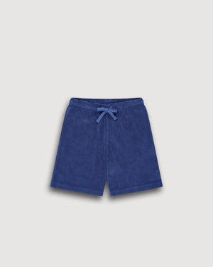 Bermuda enfant garçon en coton éponge, à taille élastique avec lien de serrage, poche plaquée arrière.