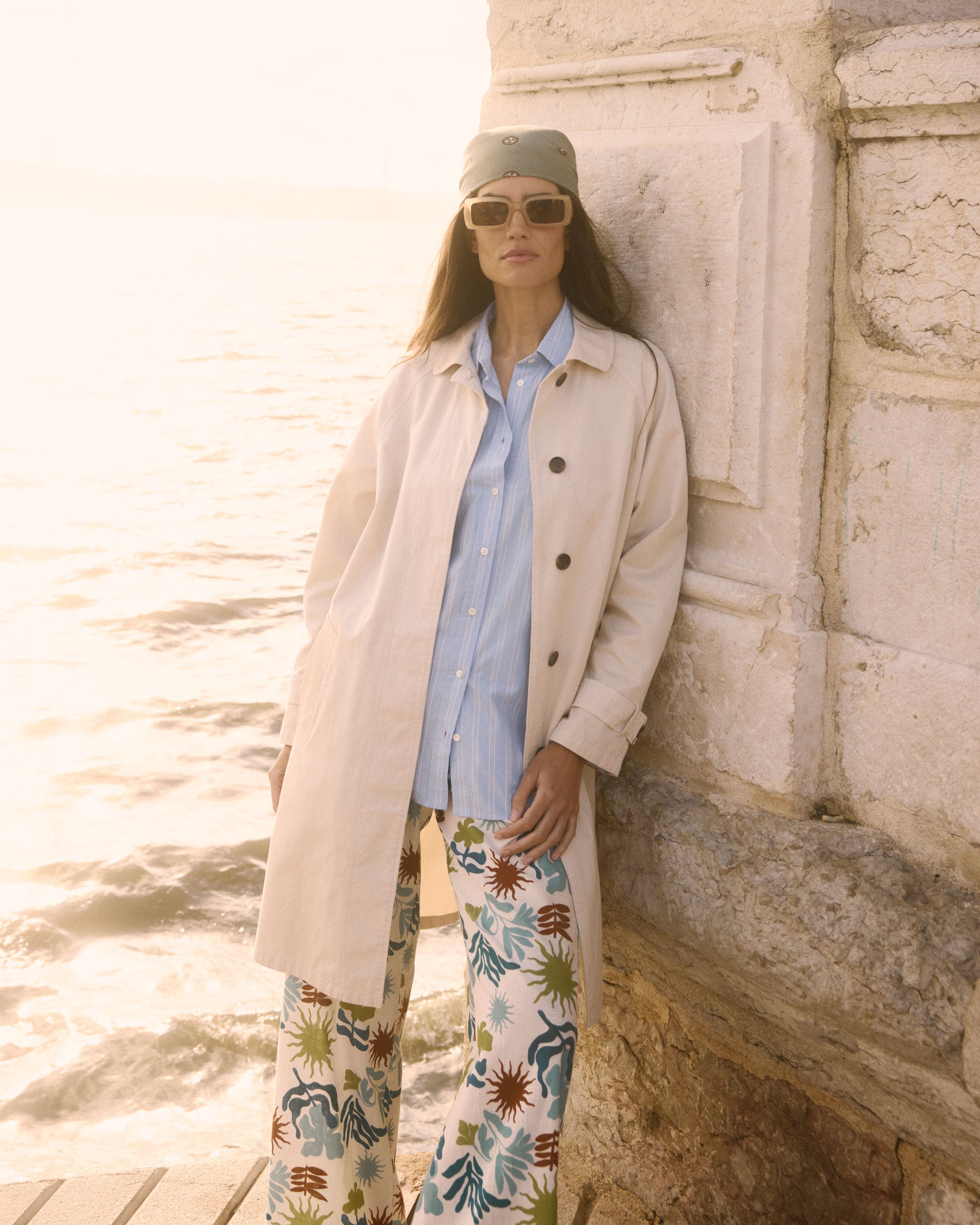 Trench Femme en Gabardine de coton Beige Vibrant